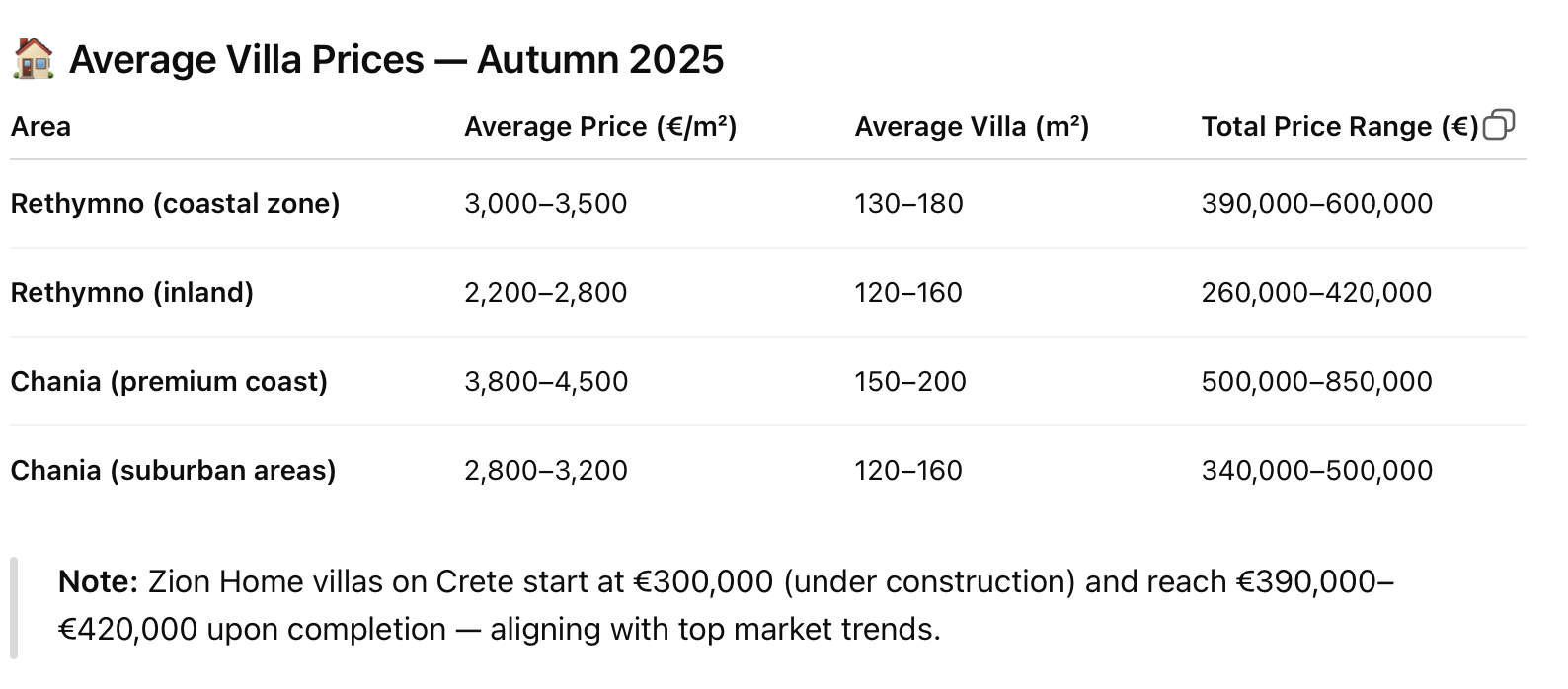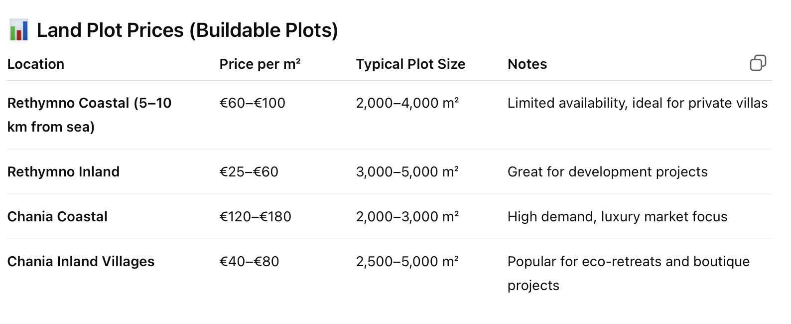 Rethymno and Chania continue to lead this growth, combining strong demand, limited land, and lifestyle appeal.
