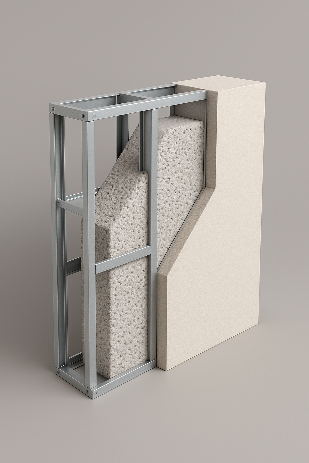 But the real innovation is inside the walls — a powerful combination of Light Steel Frames (LSTK) and foam concrete filling.