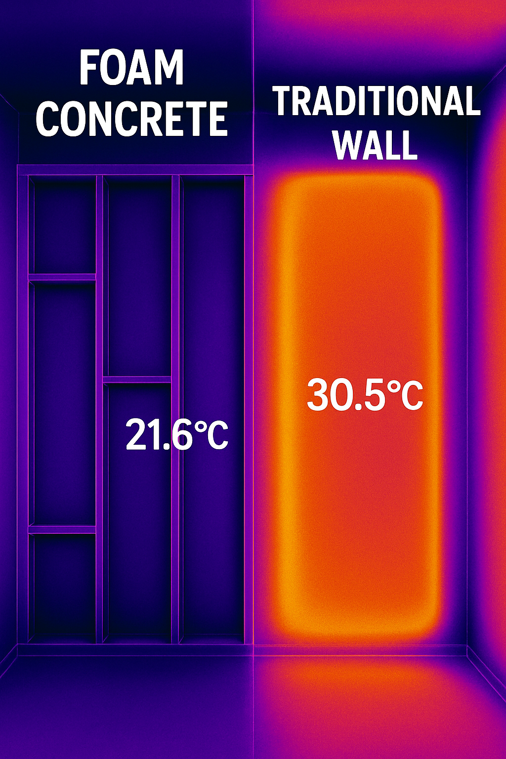 Foam concrete traps millions of air bubbles, making it one of the most efficient insulating materials in construction.